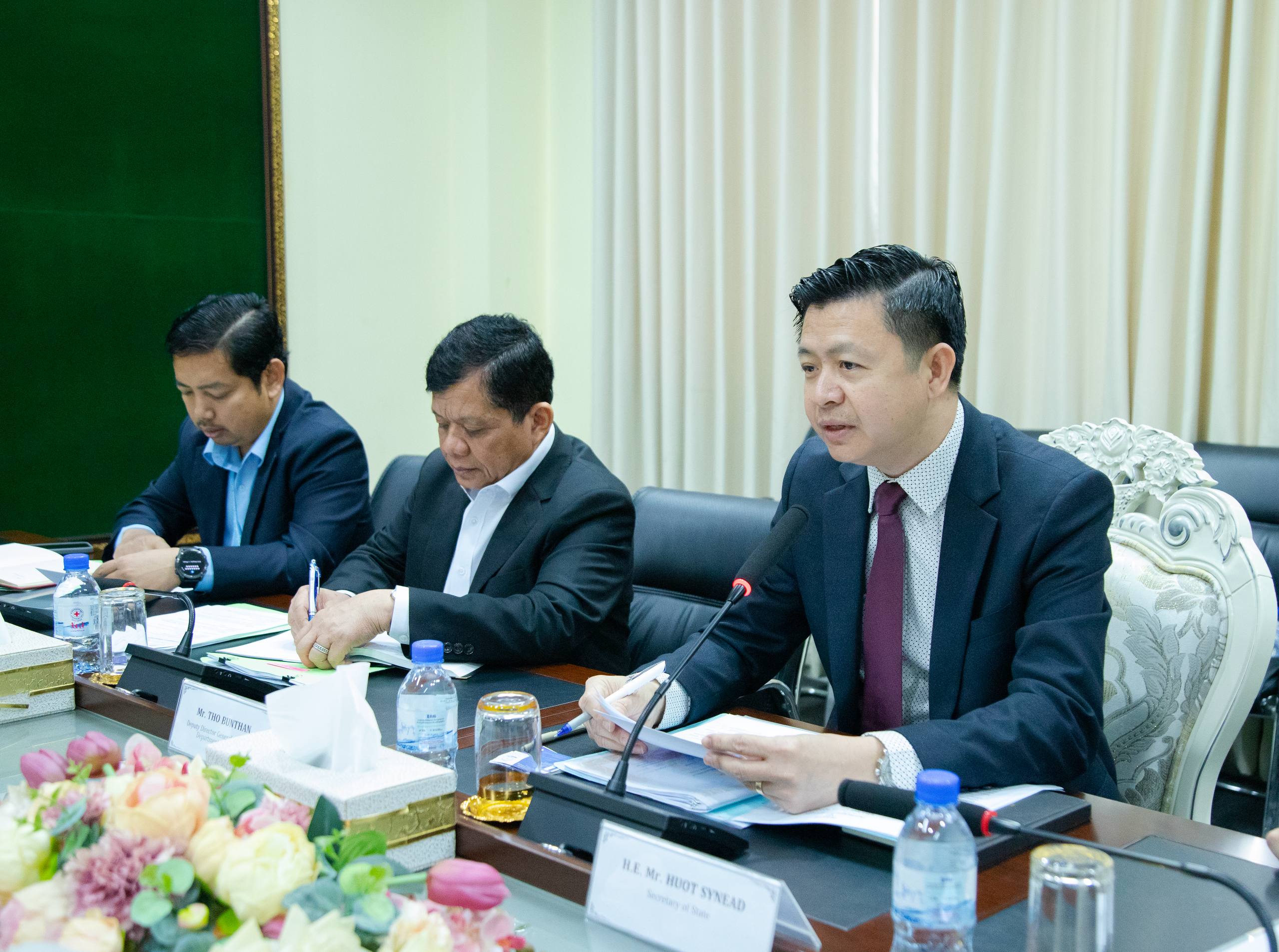 (ភ្នំពេញ)៖ លោក ហួត ស៊ីនាដ រដ្ឋលេខាធិការ ក្រសួងការងារ និងបណ្តុះបណ្តាលវិជ្ជាជីវៈ បានទទួលជួបសម្តែងការគួរសម និងពិភាក្សាការងារជាមួយលោក សាសាហារ៉ា កេនជិ (SASAHARA Kenji) នាយកសាលាអន្តរជាតិជប៉ុន CIESF Leaders Academy (CLA) និងសហការី ដើម្បីពង្រឹងកិច្ចសហការលើផ្នែកបណ្តុះបណ្តាល និងការអនុវត្តបទប្បញ្ញត្តិការងារ នាព្រឹកថ្ងៃទី២៨ ខែមករា ឆ្នាំ២០២៦ នាទីស្ដីការក្រសួង។